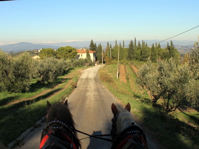 Ale do rzeczy. W Chianti, w pobliżu miejscowości Montespertoli mieszka “człowiek orkiestra” – Luca PERROTTA, który ma tu swoje gospodarstwo agroturystyczne, jest on również dyrektorem artystycznym CANTIERE IKREA czyli Stowarzyszenia “Artisti della Strada” (artyści uliczni) oraz aktorem . Ostatnio sporo czasu i wysiłku poświęcił na zdobywanie środków ze wszystkich możliwych źródeł finansowania na jego nową misję dziejową oraz zajęcie czyli wożenie turystów dorożką zaprzęgniętą w dwa konie po wzgórzach Chianti.