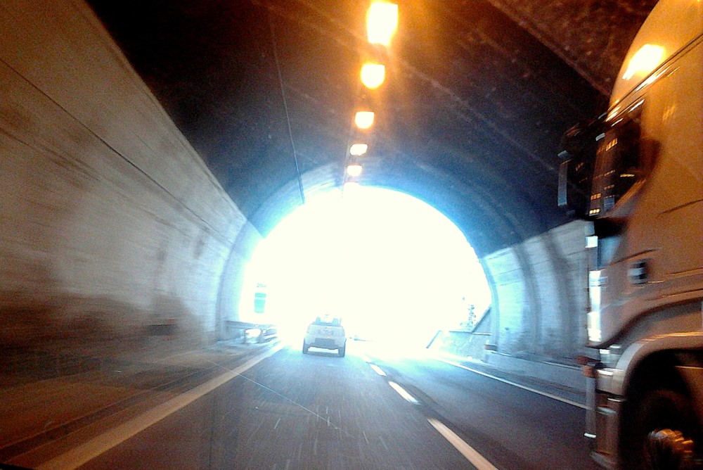 Często tunele są bardzo długie i gdy wyjeżdzam z takiego tunelu na pełną słońca autostradę, dostaję oczopląsu, pewnie dlatego, że nie mam zwyczaju używania okularów przeciwsłonecznych. We wspomnianym listopadzie udało mi się parę razy wykonać zdjęcia “światełka w tunelu”, którymi oczywiście też się zachwycam.